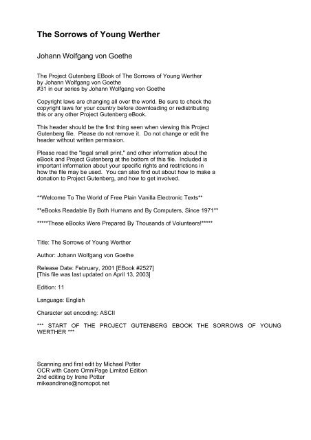 The Sorrows of Young Werther is an epistolary novel where the protagonist recounts through letters to his friend Wilhelm everything that happens in his life over a long time. Reliable Storage and Fast Transfers. Later in life he distanced himself from the sentiments of his earliest work including The Sorrows of Young Werther seeking measure and order instead.